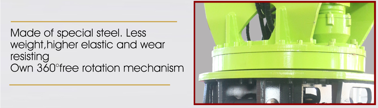 -The wide opening width with light weight , not only outstanding performance in handing the iron bar but also maximize the operation efficiency with light weight.-Unlimited clockwise and anti-clockwise 360 rotatable.